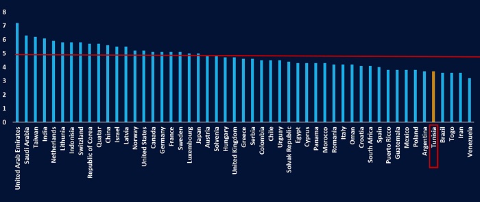 La Tunisie avait huit conditions cadres classées dans les dix dernières parmi les économies étudiées par GEM 2022. Ses plus hauts rangs étant pour la politique gouvernementale (38e).