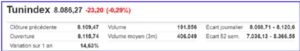 Le TUNINDEX clôture la séance en cédant encore 23 pts(-0.29%), juste à la marge (+) du seuil hautement symbolique des 8080 points.