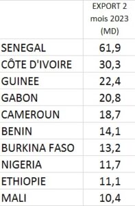 A fin février 2023, les exportations tunisiennes vers les pays de l’Afrique subsaharienne représentent seulement 2.85% (284,9 millions de dinars) du total des exportations tunisiennes qui ont atteint, durant les deux premiers mois de 2023, le niveau de 10044,3 MD.