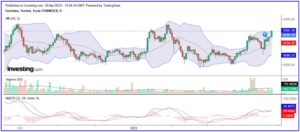 D’un point de vue graphique, on retiendra que le TUNINDEX, se retrouve à cheval sur le seuil symbolique intermédiaire à 8275 pts, dans la zone supérieure des Bandes de Bollinger élargies, avec une propension à la hausse, comme le matérialisent les 3 dernières bougies du graphique en chandeliers ci-après.