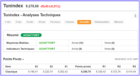 Enfin, on notera que pour le TUNINDEX, l’analyse et le Consensus affichent un signal «ACHAT FORT» en données journalières.