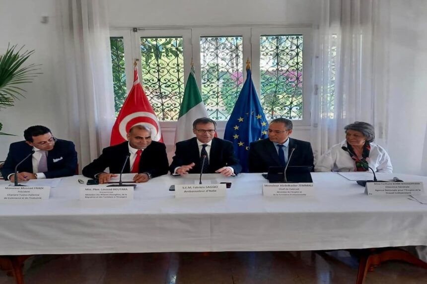 Lors d’une journée d’information organisée par l’ambassade en coopération avec le ministère des affaires étrangères de la migration et des tunisiens à l’étranger, et le ministère de l’emploi et de la formation professionnelle, ainsi que la chambre tuniso-italienne de commerce et de l’industrie, l’ambassadeur italien a salué les compétences tunisiennes et leur contribution au développement de la compétitivité des sociétés italiennes en Tunisie. Le chef du cabinet au ministère de l’emploi Abdelkader Jammali, a fait savoir que le besoin imminent des entreprises italiennes en main d’œuvre s’élève à 300 emplois, sur un total de 6 mille emplois qui seront satisfaits au cours de l’année.