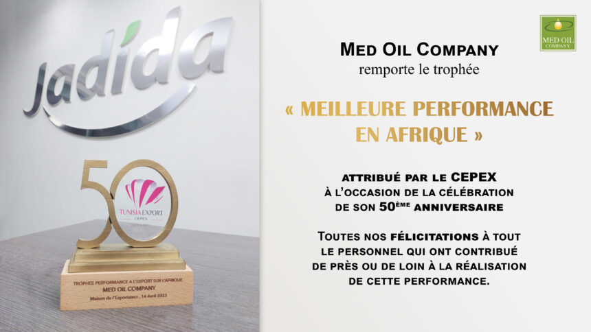 Medoil Company (Jadida), filiale de Poulina Group Holding (PGH), a remporté avec brio le prix de la meilleure performance d’exportation en Afrique, attribué par le Cepex à l’occasion de son 50e anniversaire organisé la semaine dernière.