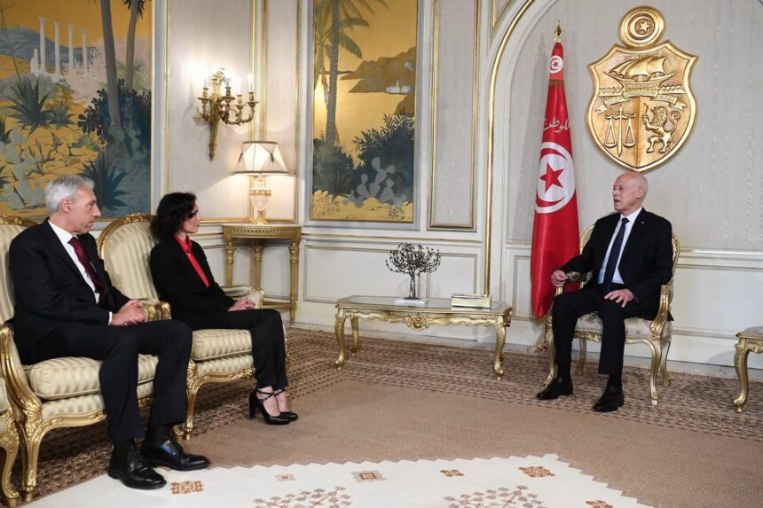 La question de la migration clandestine était l’un des sujets débattus entre Hadja Lahbib, ministre belge des Affaires étrangères, et le président de la République tunisienne, Kaïs Saïed, pendant sa visite en Tunisie, du 9 au 11 mai 2023, en compagnie de son homologue portugais, João Gomes Cravinho.
