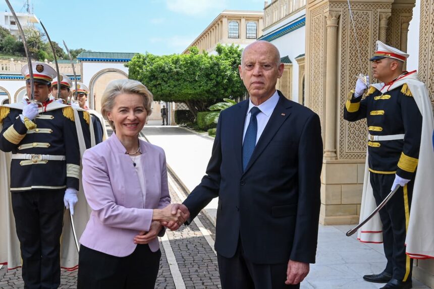 « Le quatrième pilier est la migration. Nous avons tous deux intérêts à briser le modèle économique cynique des passeurs. Ils mettent délibérément en danger des vies humaines à des fins lucratives et c’est horrible. Nous allons collaborer dans le cadre d’un partenariat opérationnel de lutte contre le trafic de migrants et nous apporterons à la Tunisie une aide en matière de gestion des frontières ». « Cette année, l’UE fournira 100 millions d’euros à la Tunisie pour la gestion des frontières, mais aussi pour des opérations de recherche et sauvetage, pour la lutte contre le trafic de migrants et pour la politique de retour. L’objectif est de soutenir une politique globale en matière de migration fondée sur le respect des droits de l’homme », a-t-elle affirmé.
