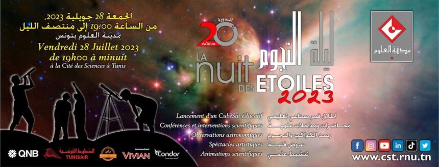 Après l’édition 2022 ayant drainé 7400 visiteurs pendant la soirée, avec un record de 8300 à l’occasion des éditions précédentes, » La Nuit des Etoiles », le plus grand événement du programme scientifique annuel de la Cité des Sciences à Tunis (CST) se tiendra dans sa 20ème édition le vendredi 28 juillet à partir de 19h00 jusqu’à minuit.