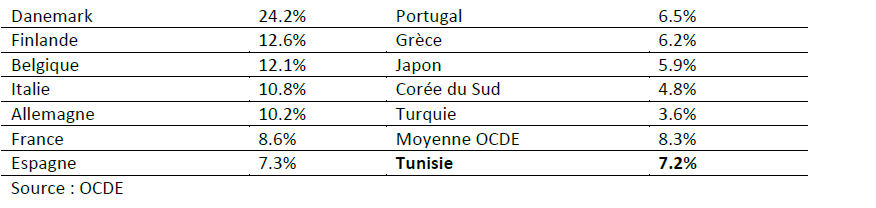 De la sorte, la part de la TVA dans le PIB est désormais assez proche de la moyenne des pays de l’OCDE et de celle de certains pays de la rive nord de la Méditerranée comme le montre le tableau ci-après :