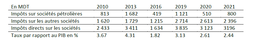 Les recettes au titre de l’impôt sur les sociétés évoluent en dents de scie en relation notamment avec le comportement des sociétés pétrolières