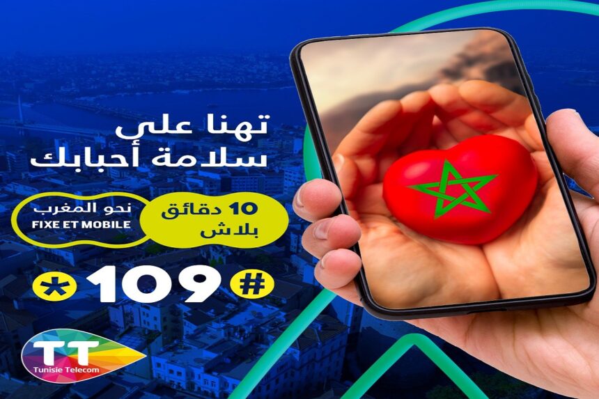 Tunisie Telecom assure que cette action vise à faciliter le contact de nos concitoyens avec leurs proches et amis résidents au Maroc. Ellen s’inscrit dans le cadre de l’aide et de solidarité avec les victimes du tremblement de terre survenu au Maroc dans la nuit de vendredi 8 septembre 2023.