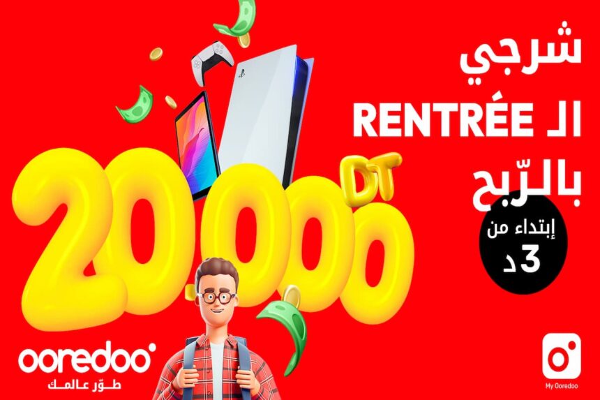 Chaque abonné Ooredoo peut entrer dans le tirage au sort en effectuant une recharge téléphonique de 3 dt et plus ou en procédant à l’achat de forfait internet. 20 000 DT sont mis en jeu !