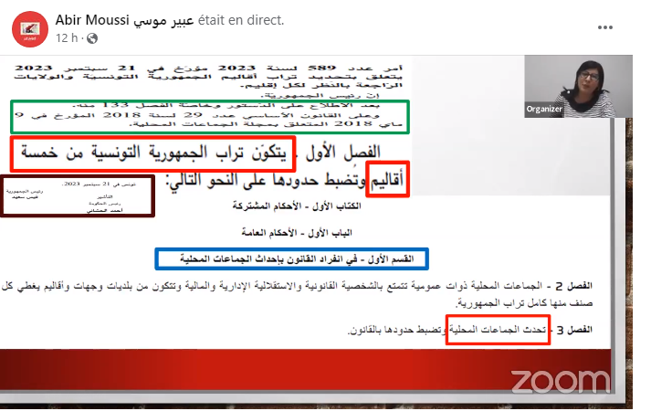 Tout comme elle considère que le découpage territorial en entités géographiques distinctes sous le nom de “districts” n’a pas été soumis au choix des Tunisiens, ni expliqué, ni discuté dans le cadre institutionnel. Ce qui constitue une violation flagrante des dispositions de l’article 3 de la loi numéro 29 de l’année 2018 concernant la municipalité. Laquelle stipule que la création de municipalités et la délimitation de leurs frontières ne peuvent être effectuées que par une loi.