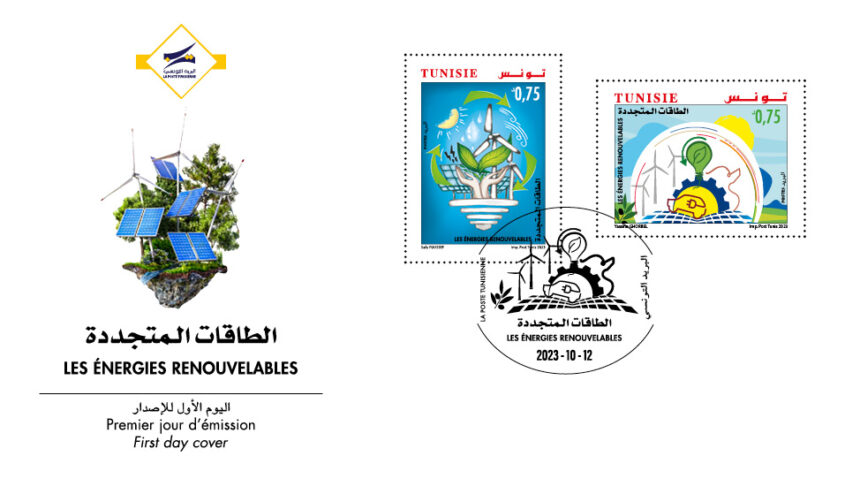 La Poste Tunisienne émettra dans la journée du 12 octobre 2023, deux timbres-poste au sujet des énergies renouvelables. Car leurs objectifs sont clairs : leur contribution à l’économie nationale, mais aussi à la réduction du déficit énergétique. Ce qui conduira en l’occurrence à plus d’indépendance énergétique du pays et à la contribution à la réalisation des objectifs de développement durable (ODD).