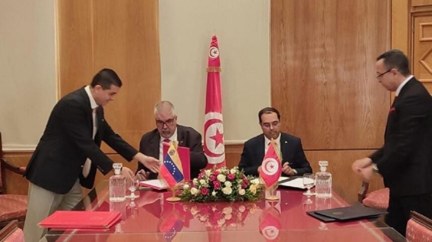 Le secrétaire d’État auprès du ministre des Affaires étrangères, de l’Immigration et des Tunisiens à l’étranger, Mounir Ben Rajab, et le vice-ministre des Affaires étrangères du Venezuela pour les affaires africaines, Yuri Bimental, ont signé le jeudi 12 octobre 2023, au siège du ministère, un accord entre la Tunisie et le Venezuela. Cet accord prévoit la suppression du visa pour les titulaires de passeports diplomatiques et spéciaux.