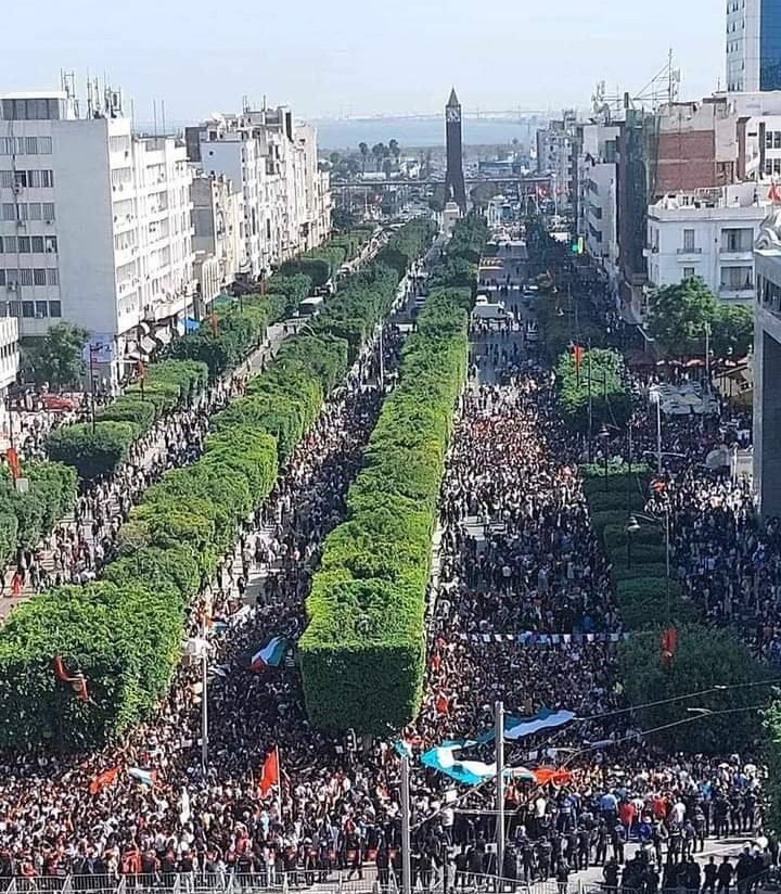On était au centre-ville de Tunis. En même temps, d’autres manifestations de soutien au peuple palestinien à Gaza ont eu lieu un peu partout dans toutes les villes tunisiennes. A l’instar de Sfax (la plus grande), Gabès, Nabeul, Gafsa, Tataouine, Béja et bien d’autres…