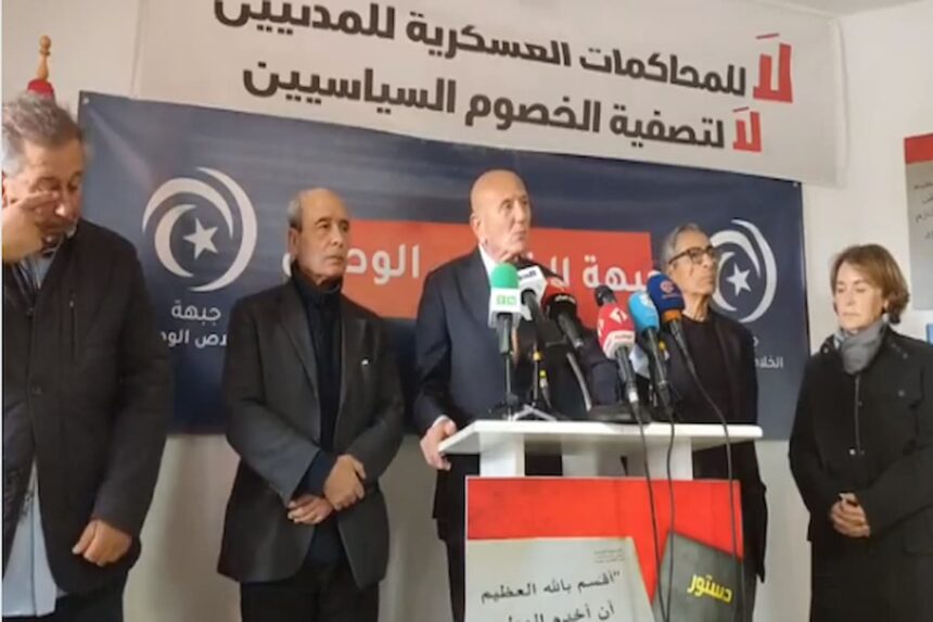 Ainsi, les personnes arrêtées dans cette affaire sont : Issam Chebbi (secrétaire général du Parti républicain); Jawhar Ben Mbarek (dirigeant du Front de salut national); Ghazi Chaouachi (ancien secrétaire général du Courant démocrate); Khayyam Turki (homme politique et homme d’affaires); Abdelhamid Jelassi (ancien dirigeant du mouvement Ennahda); et Ridha Belhaj (ancien membre du mouvement Nidaa Tounes).