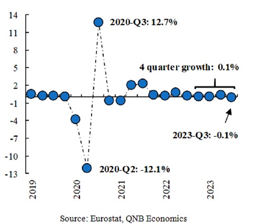 Depuis 2022, la résilience de l’économie de la zone euro a été poussée à ses limites en raison de vents contraires importants provenant des prix élevés de l’énergie, d’un resserrement record de la politique monétaire, de l’incertitude mondiale et d’une faible demande extérieure. En conséquence, la croissance a stagné au cours des quatre derniers trimestres, le PIB réel n’augmentant que de 0,1 %.