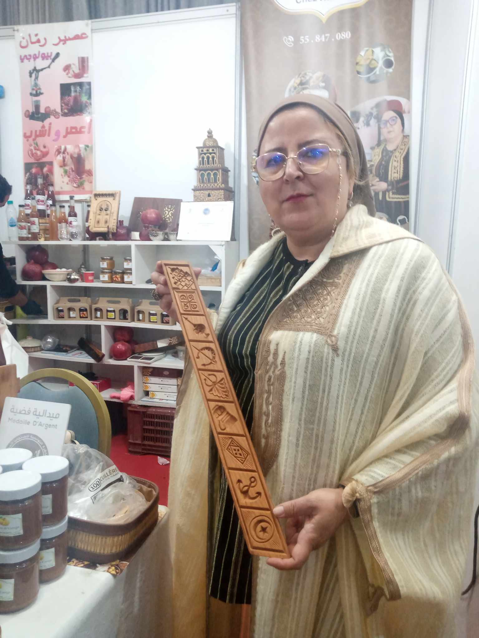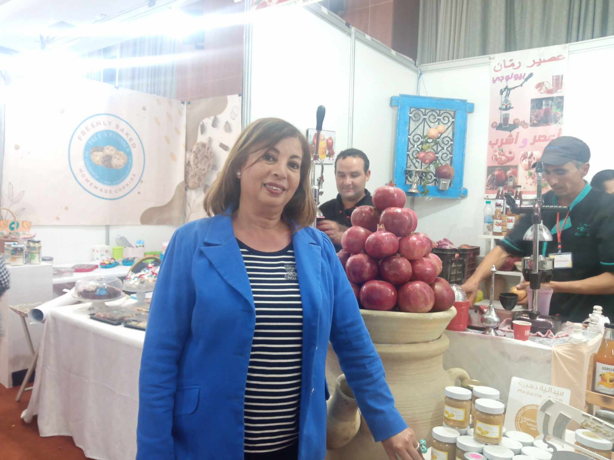 Par ailleurs, les grenades de Testour étaient également présentes, avec la directrice Raja Ben Miled, fondatrice de la société Makhzoun. Cette entreprise a pour objectif de mettre en valeur les produits de terroir régionaux. Elle a d’ailleurs remporté plusieurs médailles lors du Concours des Produits de terroir en 2019. El Makhzoun propose également du miel, de l’huile d’olive, des pâtes de toutes sortes, ainsi que de jolis assortiments gourmands prêts à être offerts.