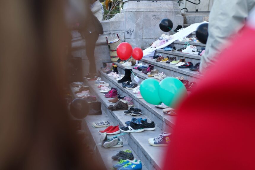 En outre, un regroupement symbolique de chaussures pour enfants a été organisé devant le théâtre municipal au centre-ville, dans le cadre d’une initiative de collecte de dons en solidarité avec les enfants palestiniens de la bande de Gaza.
