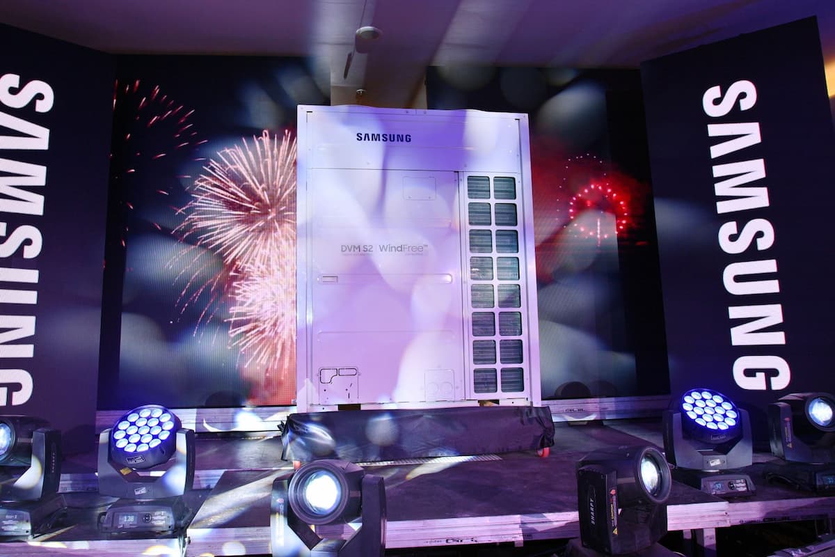 Samsung présente ses innovations de climatisation centrale et lance, en ce sens, une nouvelle unité extérieure de climatisation DVM S2 (VRF – pour Variable Refrigerant Flow), compatible avec les unités intérieures WindFree, pour fournir un niveau optimal de confort de refroidissement et de chauffage sans l’inconfort d’un flux d’air direct.