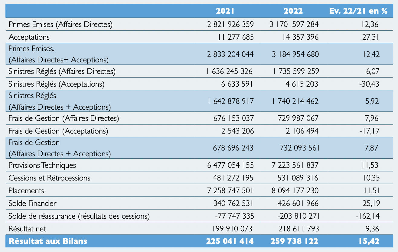 De plus, la FTUSA indique que le résultat technique de l’exercice 2022 s’est amélioré. Ainsi, il dégage un excédent de 218,612 MDT; contre un excédent de 199,910 MDT en 2021.