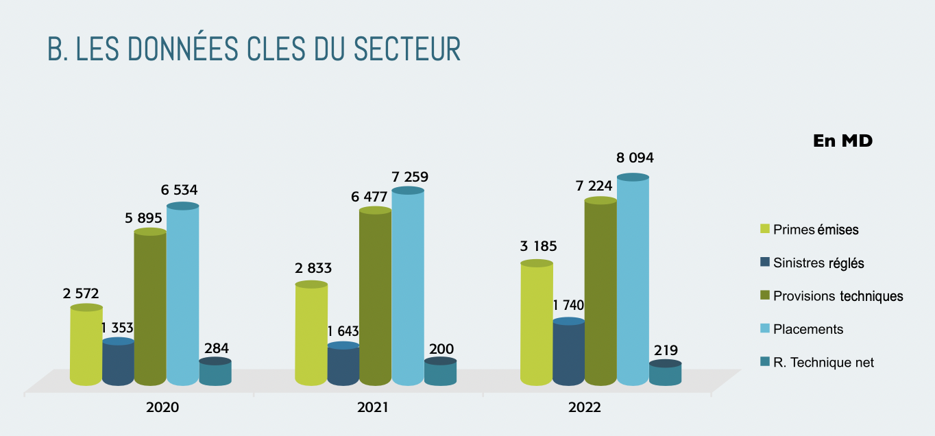 De leur côté, les provisions techniques sont passées de 6 477,054 MDT en 2021 à 7 223,562 MDT en 2022. Soit une augmentation de 11,53 % en 2022.
