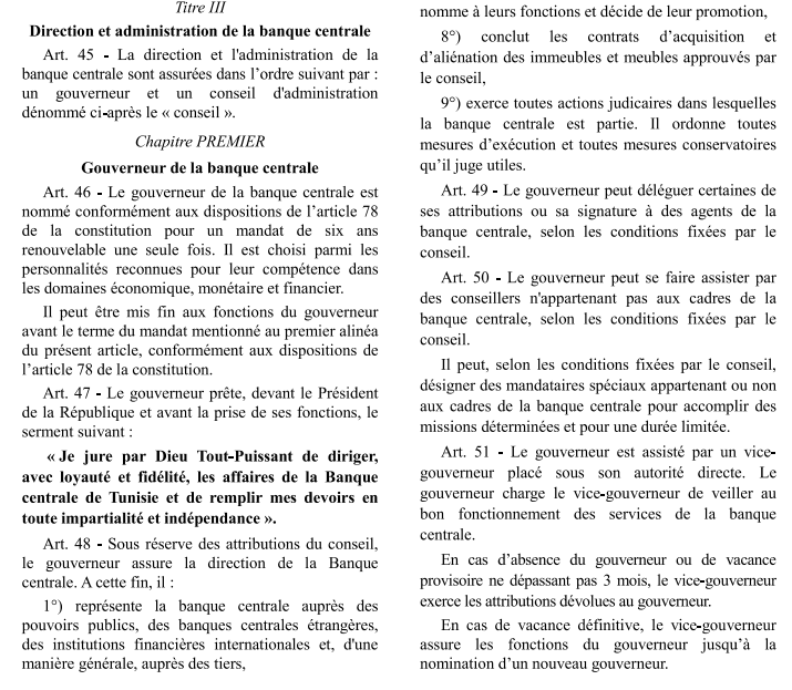 Le mandat du gouverneur de la Banque centrale de Tunisie, Marouane El Abassi, se termine le 16 février 2024, comme le prévoit la loi organique, selon l’article 46 : Le gouverneur de la Banque centrale est nommé conformément aux dispositions de l’article 78 de la Constitution pour un mandat de six ans renouvelable une seule fois. Il est choisi parmi les personnalités reconnues pour leur compétence dans les domaines économique, monétaire et financier.