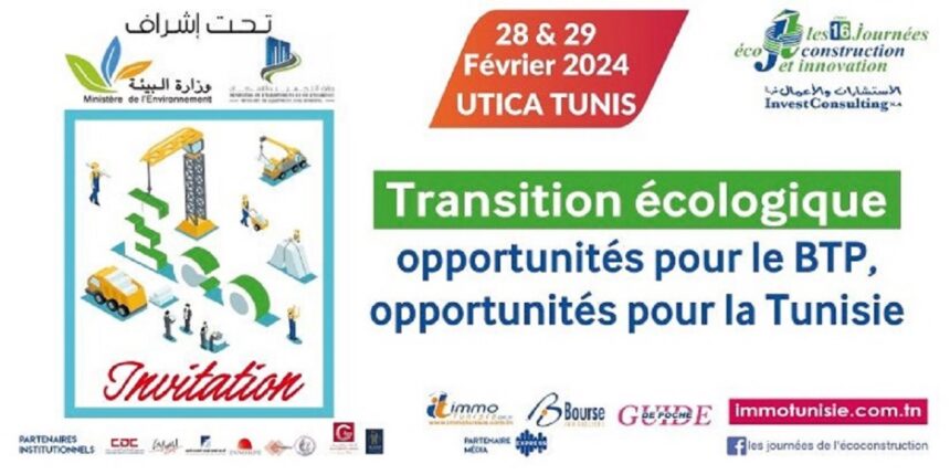 Le 16e salon de l’éco-construction et de l’innovation a démarré, mercredi 28 février 2024, à Tunis, sur le thème «Transition écologique :Opportunités pour le BTP, Opportunités pour la Tunisie». Il se poursuivra jusqu’à jeudi 29 février 2024, avec la participation de près de 35 exposants et des professionnels parmi des architectes, des ingénieurs, des constructeurs, des promoteurs immobiliers, des artisans et des industriels.