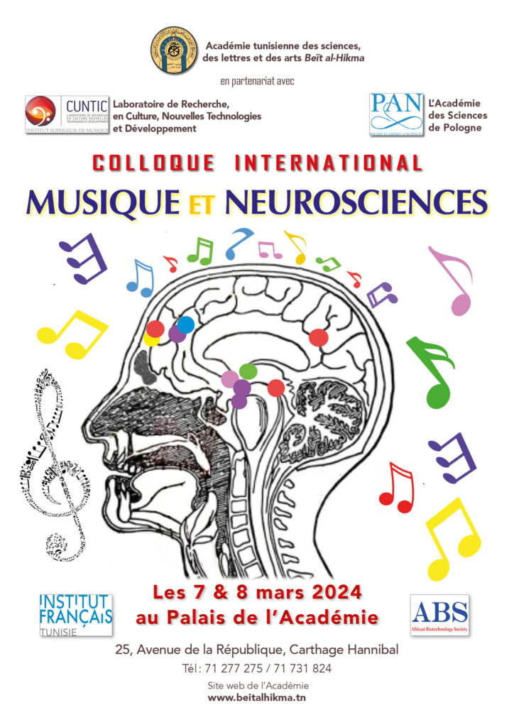 Un colloque international sur le thème « Musique et neurosciences » se tiendra les 7 et 8 mars, au palais de l’Académie tunisienne des sciences, des lettres et des arts « Beit al-Hikma » à Carthage-Hannibal.