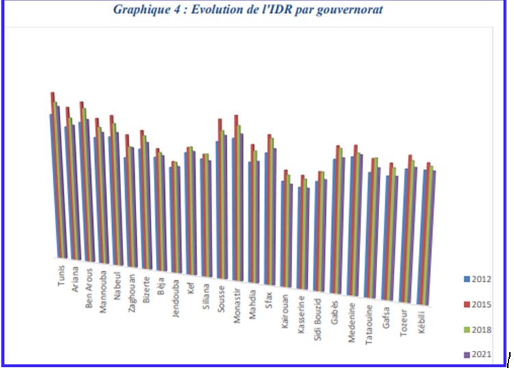 Les investigations (ITCEQ Rapport indice Développement Régional 2021) montrent que les régions intérieures (Kasserine, Kairouan, Jendouba, Sidi Bouzid) occupent les derniers rangs dans la grille du développement régional, elles constituent les zones les plus défavorisées par rapport au reste du pays.