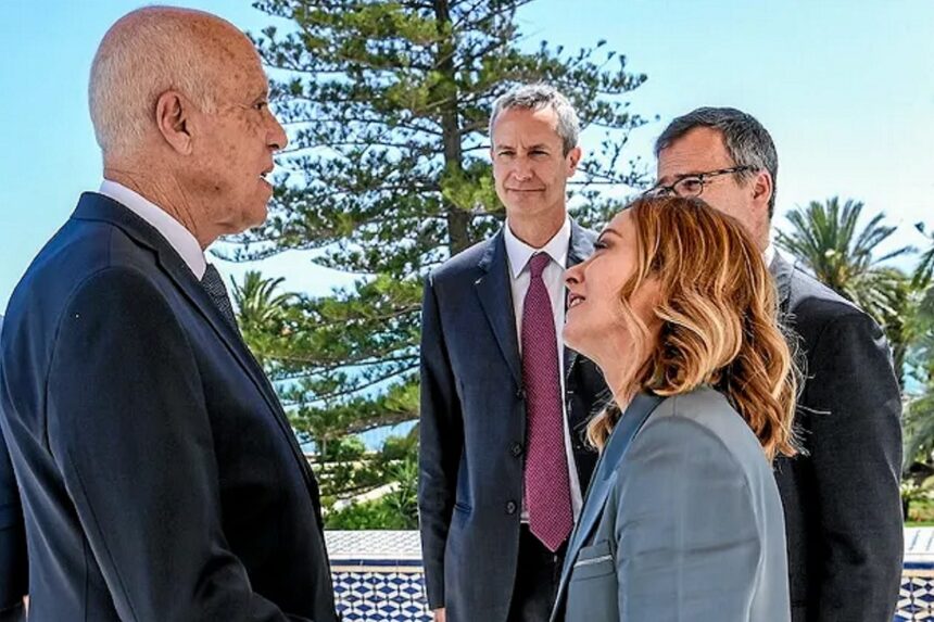 Pour le président de la République Tunisienne, Kaïs Saïed, la récente visite de Giorgia Meloni en Tunisie était l’occasion de lui rappeler de vive voix que notre pays ne deviendra pas « un pays de transit ou d’installation » et qu’il n’est pas question que la Tunisie fasse office de poste frontière avancé de l’Europe.