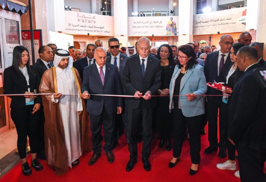 Le président de la République, Kaïs Saïed, inaugure la 38e édition de la Foire internationale du livre de Tunis au Parc des expositions du Kram, ce 19 avril 2024.