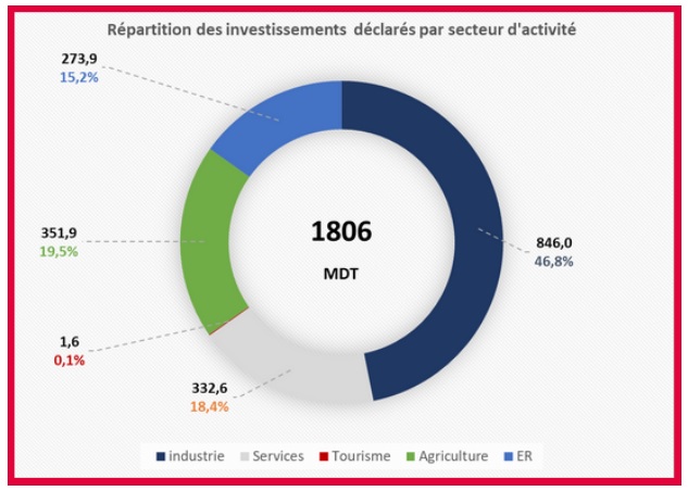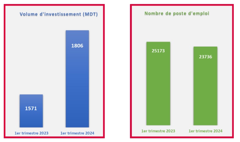 Selon les données de l’Instance tunisienne d’investissement (TIA – pour Tunisian Investment Authority), les investissements déclarés au cours du premier trimestre de 2024 se sont élevés à 1 806 millions de dinars (MDT). Ce qui a permis la création de 23 736 emplois dans divers secteurs économiques.
