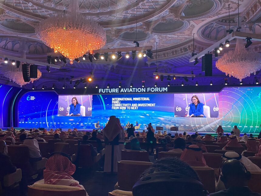 La vision de la Tunisie dans le domaine de l’aviation civile à l’horizon 2040 repose sur le renforcement des axes relatifs à la durabilité de l’aviation civile et à l’intégration des aéroports et de l’aviation dans les réseaux de mobilité et d’infrastructures. C’est ce qu’a affirmé, lundi 20 mai 2024, la ministre de l’Équipement et de l’Habitat – et ministre du Transport par intérim -, Sarra Zaâfrani Zenzri, lors de la troisième édition de la Conférence « Avenir de l’aviation » qui se tient du 20 au 22 mai 2024 à Riyad en Arabie Saoudite.