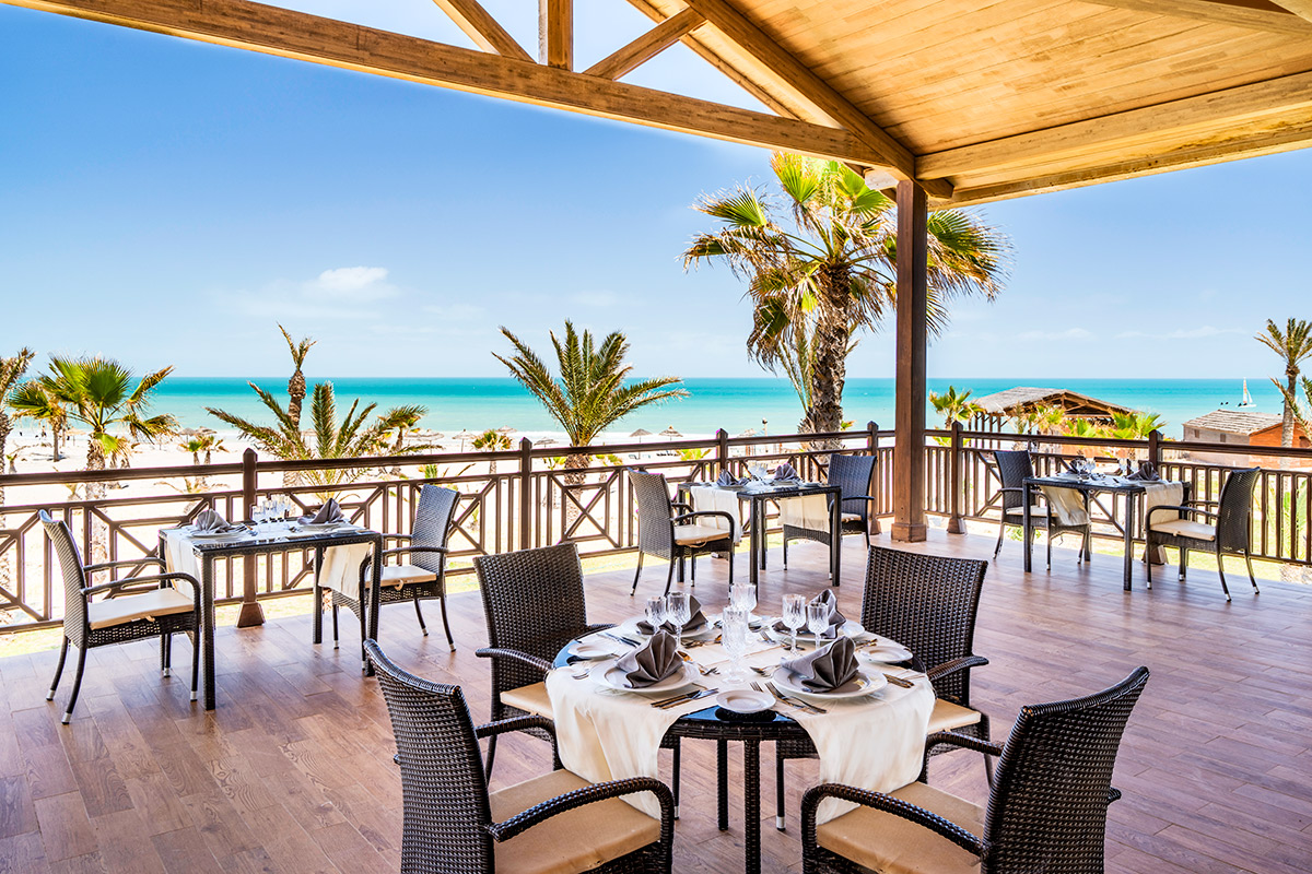 L’hôtel propose une offre tout compris avec sept restaurants et bars. Les clients pourront savourer des produits naturels, frais et faits maison. Il y a tout d’abord le restaurant Buffet : entièrement rénové, avec une grande terrasse offrant un espace de restauration, il sert le petit-déjeuner, le déjeuner et le dîner. L’hôtel propose également un restaurant thématique méditerranéen à l’heure du dîner avec une vue panoramique sur la mer, proposant trois thèmes: fruits de mer, italien et tunisien.
