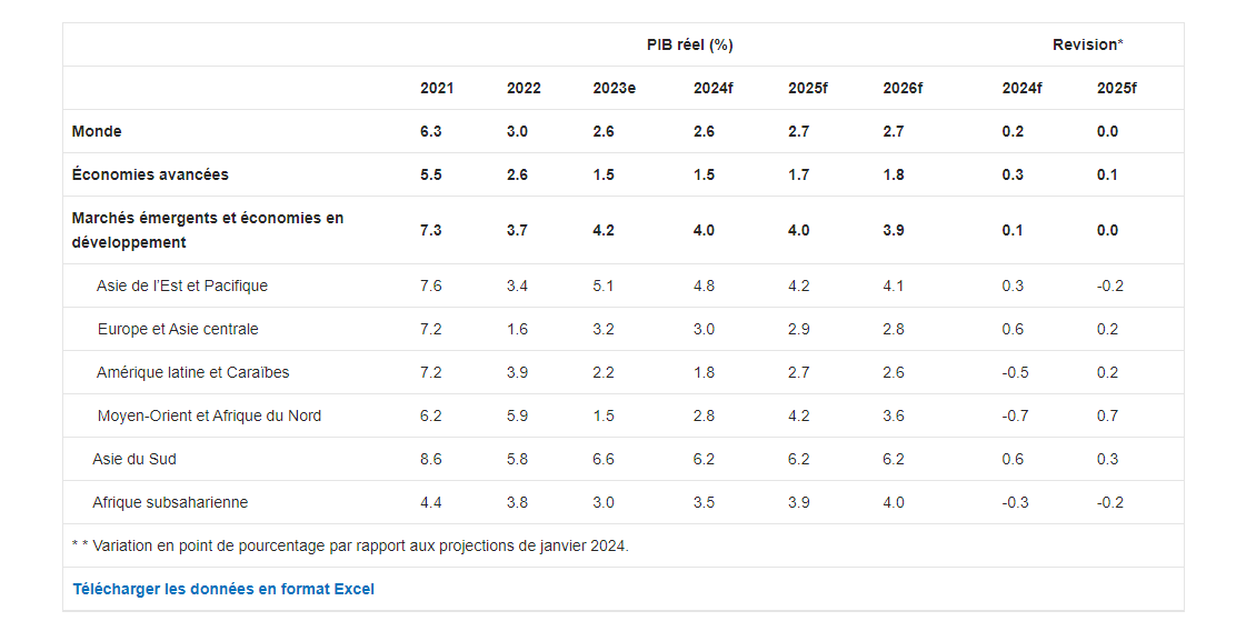 Les économies en développement devraient croître de 4 % en 2024-2025. Tandis que les économies avancées verront une croissance stable à 1,5 % en 2024, augmentant à 1,7 % en 2025.