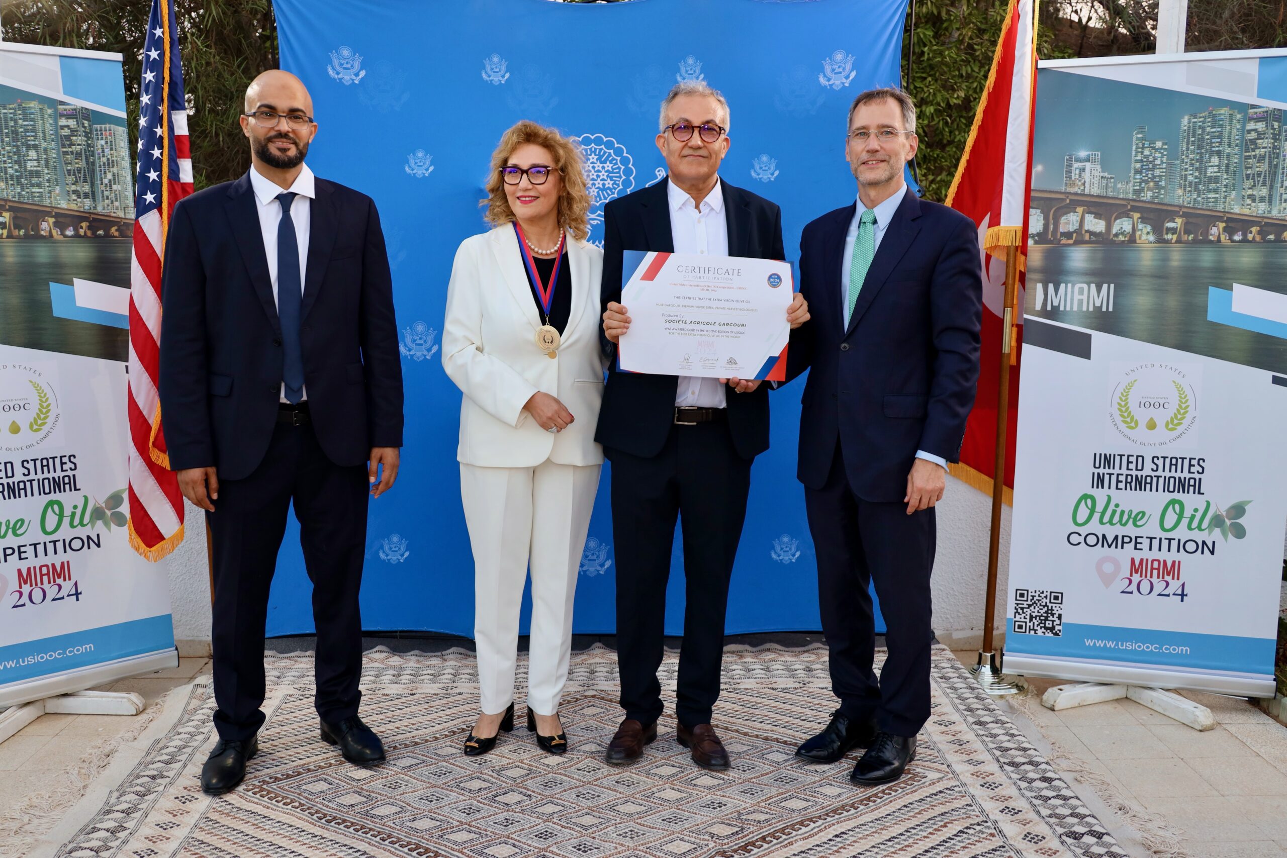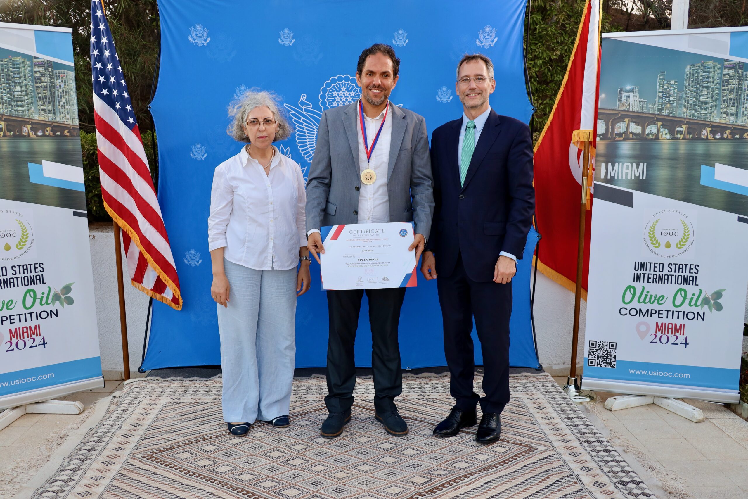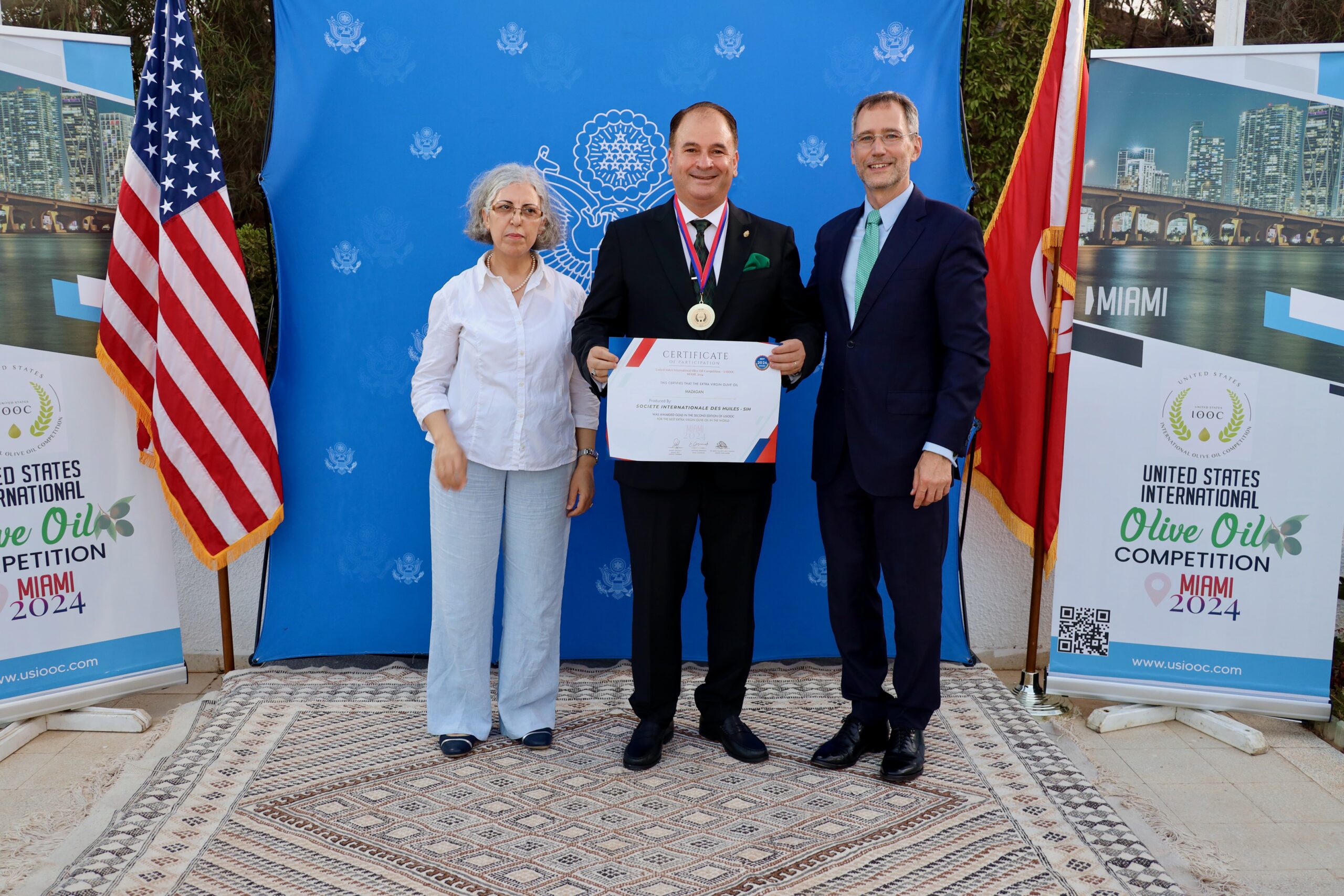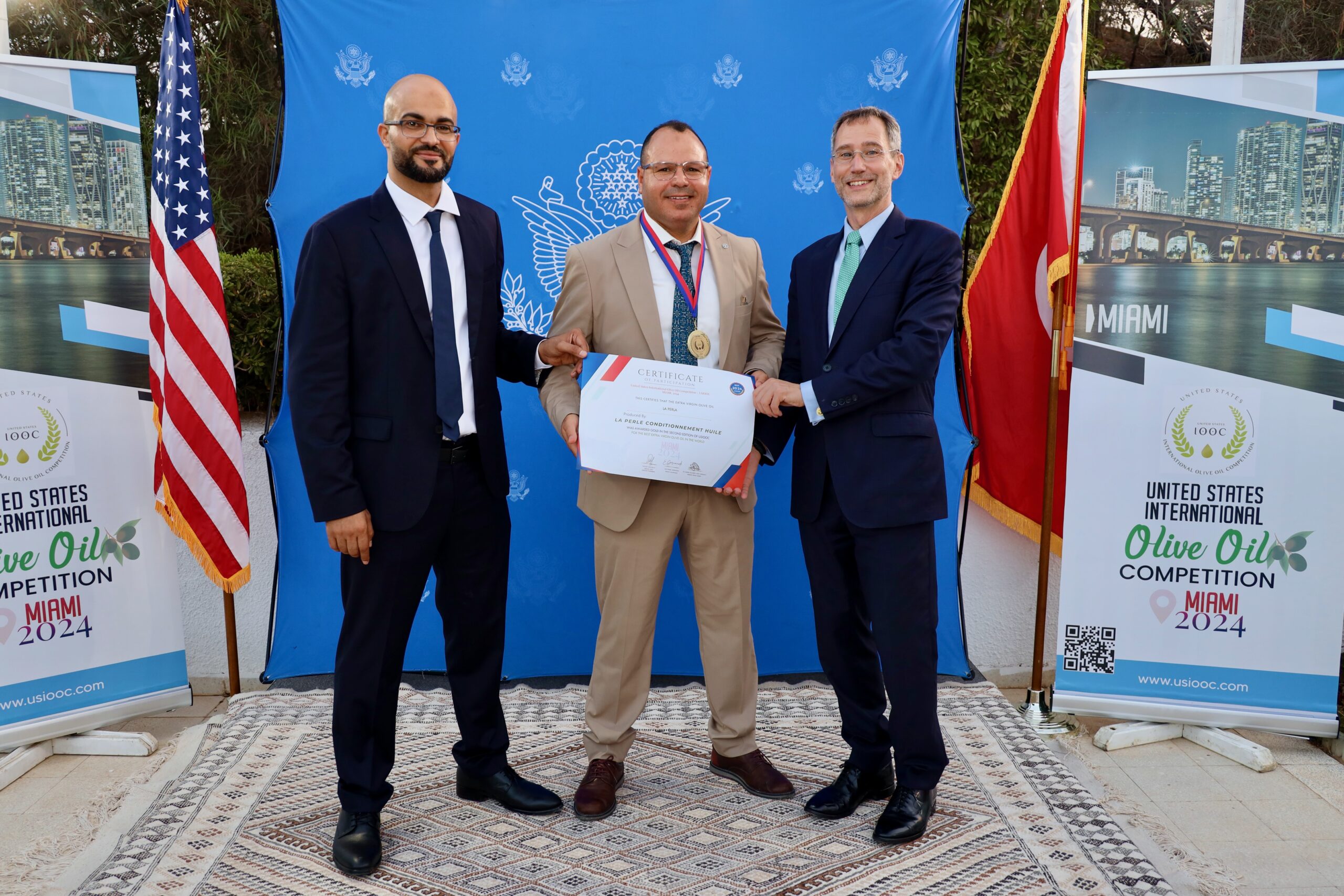 Raouf Chouket, PDG de la Global International Olive Oil Competition, a salué l’initiative de l’ambassadeur des États-Unis pour honorer les huiles tunisiennes primées. Il a mentionné la participation de plus de 100 entreprises de 14 pays différents, avec des variétés comme Chemlali, Arbosana, Koroneiki etc.