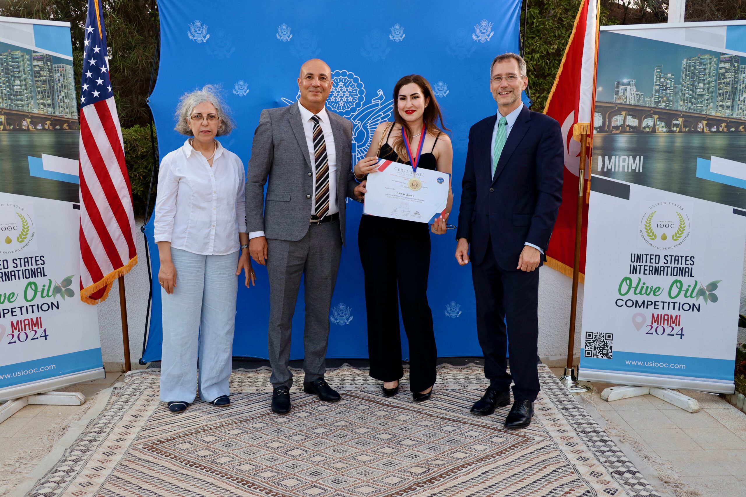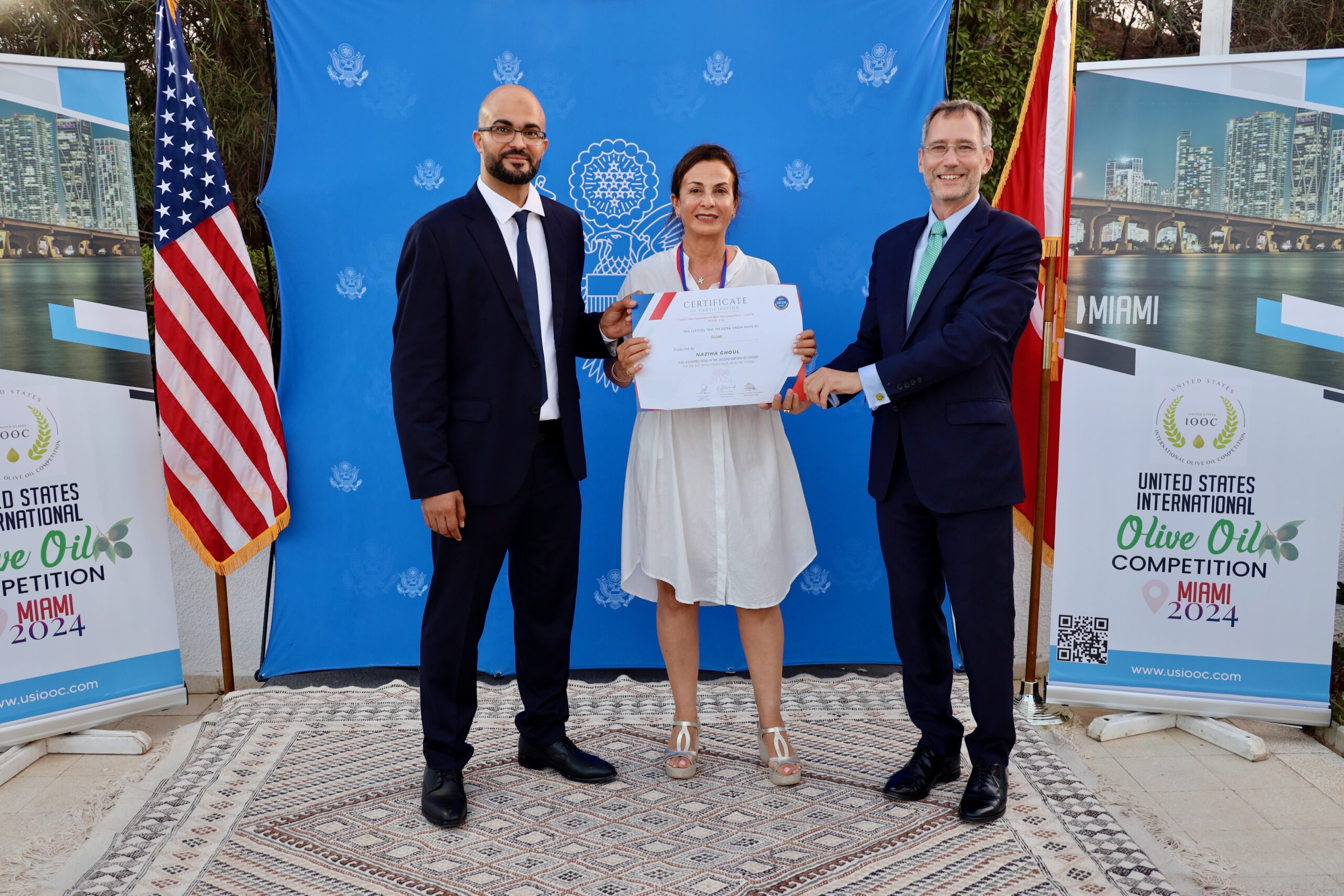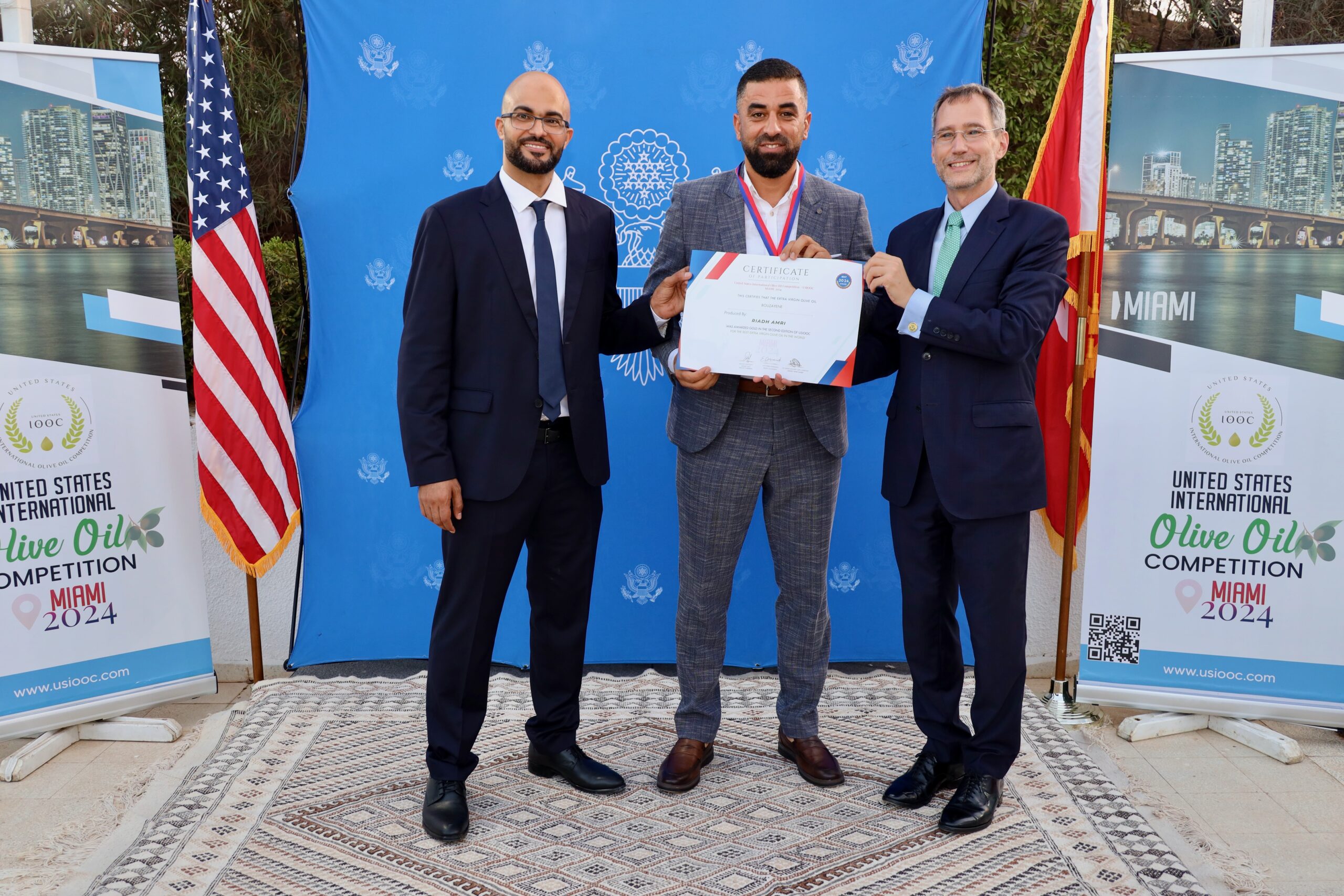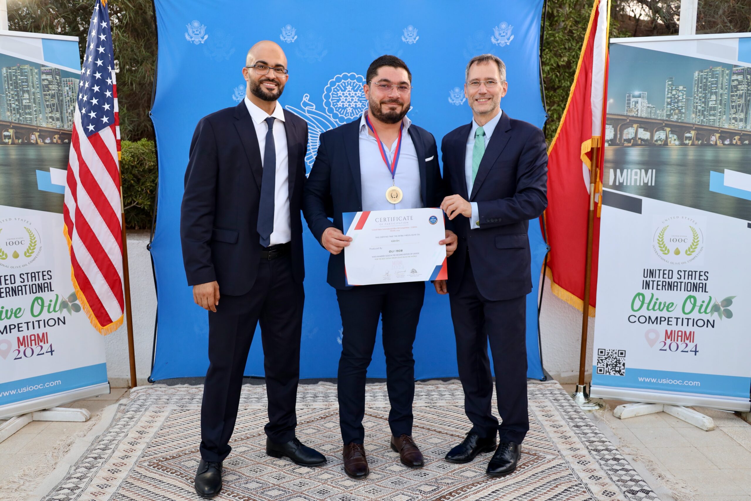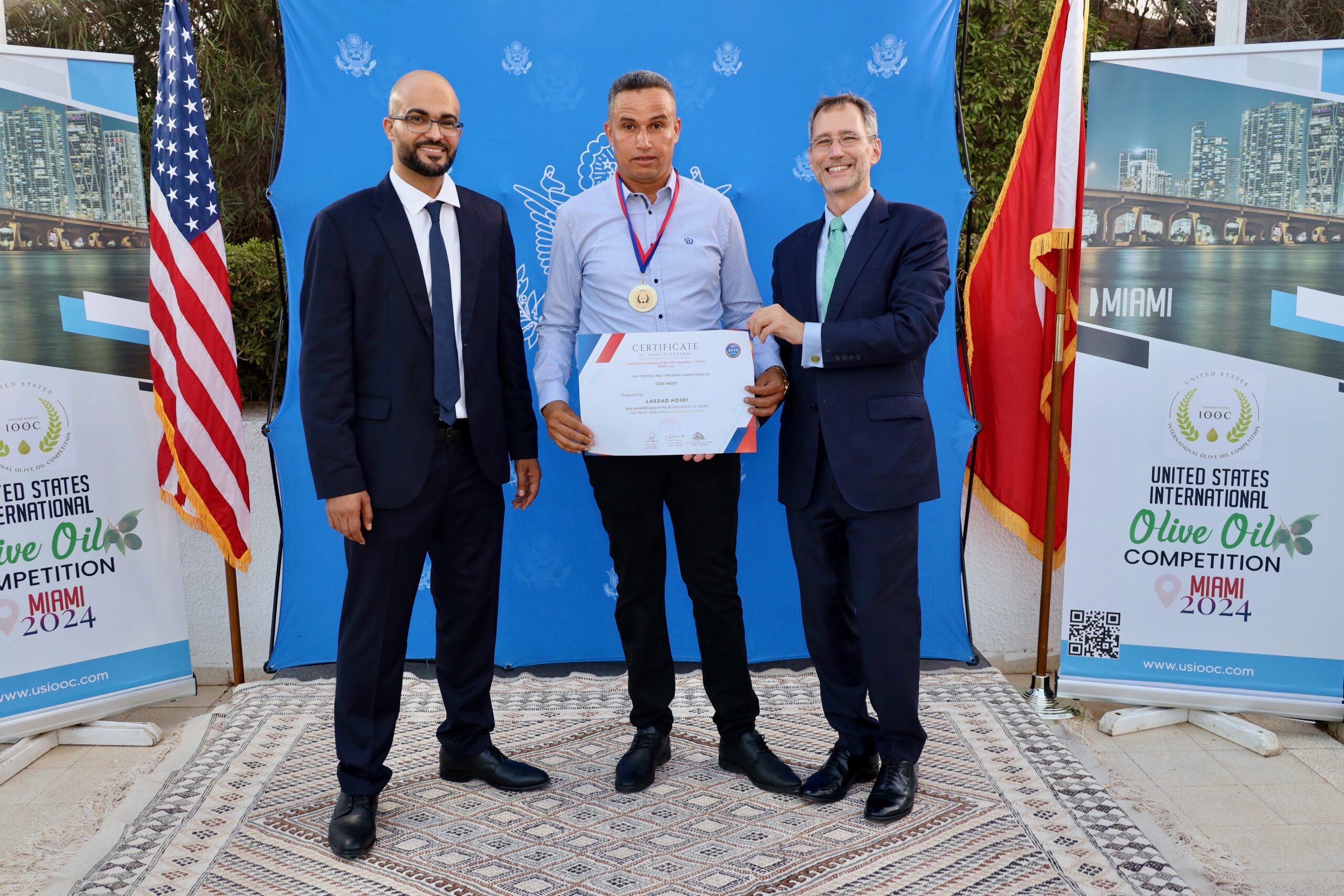 Raouf Chouket, PDG de la Global International Olive Oil Competition, a salué l’initiative de l’ambassadeur des États-Unis pour honorer les huiles tunisiennes primées. Il a mentionné la participation de plus de 100 entreprises de 14 pays différents, avec des variétés comme Chemlali, Arbosana, Koroneiki etc.