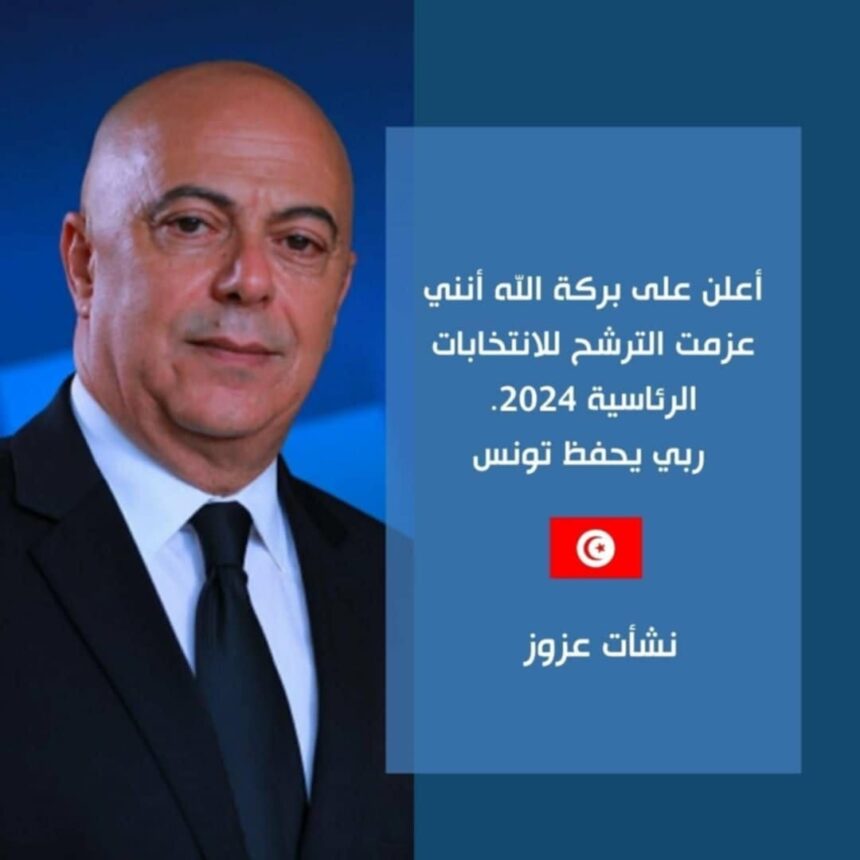 Nachêet Azzouz a récemment déclaré qu’il se présente à l’élection présidentielle prévue pour le 6 octobre 2024. Animateur populaire, il est bien connu pour ses émissions sur Express FM et Attessia TV.