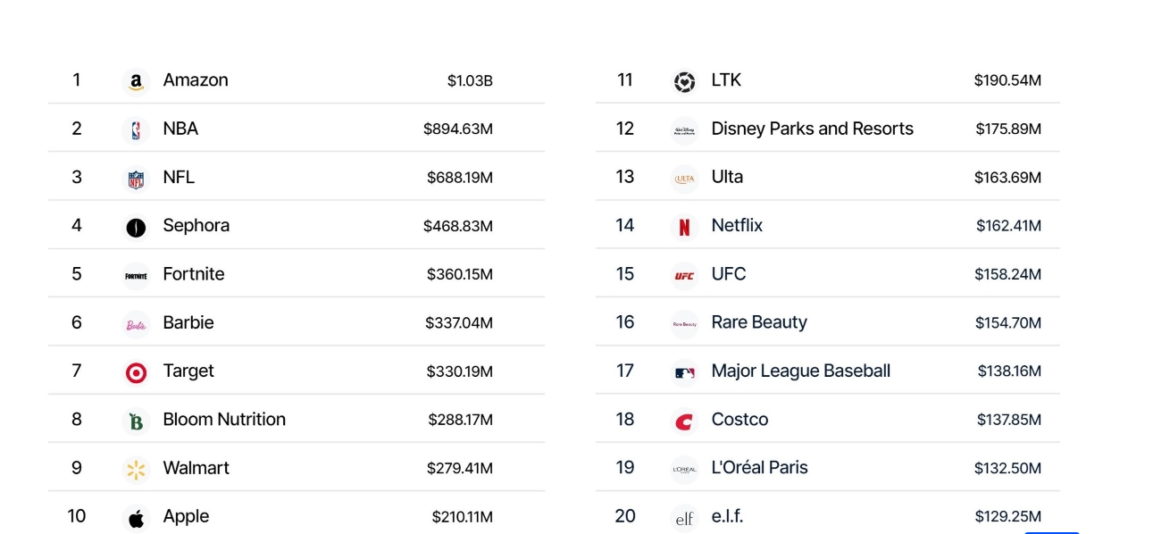 Ainsi, Amazon se positionne en tête de liste, suivi par la NBA et la NFL. Sephora occupe la 4ème place. Tandis que L’Oréal Paris se classe en avant dernière position au 19ème rang et Elf au 20ème rang.