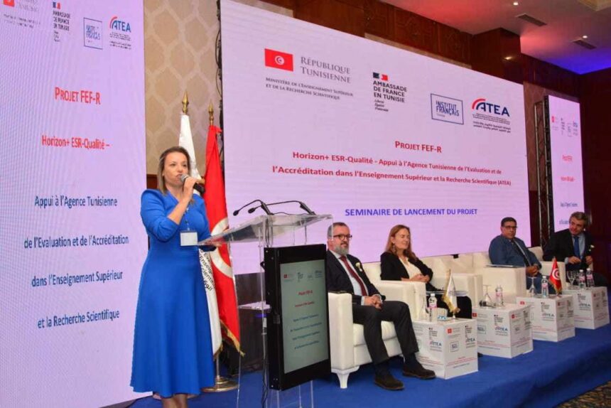 Ce projet vise à soutenir l’ATEA dans la mise en œuvre de ses activités à travers plusieurs axes, notamment le renforcement des échanges d’expertise et le transfert de compétences avec les agences homologues en France, la montée en compétence du personnel et des experts, ainsi que la promotion d’une culture d’assurance qualité au sein des établissements tunisiens. Le séminaire a réuni de hauts cadres du ministère de l’Enseignement Supérieur et de la Recherche Scientifique, ainsi que des représentants de la coopération française, notamment l’ambassadrice de France en Tunisie, Mme Anne Guéguen.