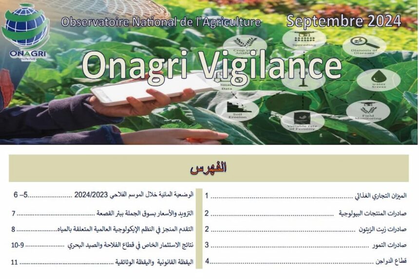 Les recettes des exportations des produits agricoles biologiques tunisiens ont enregistré une augmentation de 9,7%, à fin août 2024, pour atteindre 1158,4 millions de dinars (MD), en comparaison avec la même période de l’année précédente, d’après la note Onagri Vigilance, publiée, jeudi 13 septembre, par l’Observatoire National de l’Agriculture (Onagri).