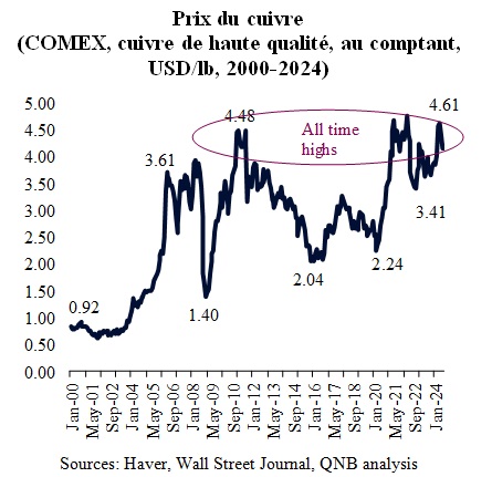 Les prix du cuivre oscillent à nouveau autour de la fourchette historique de 4,1 à 4,6 USD par livre (lb), atteinte à la fois après la crise financière mondiale et le boom des investissements post-Covid. Cela soulève naturellement la question de savoir si les prix du cuivre sont trop élevés, nécessitant une correction significative, ou s’ils sont susceptibles d’une percée significative vers des niveaux beaucoup plus élevés pour une période prolongée.