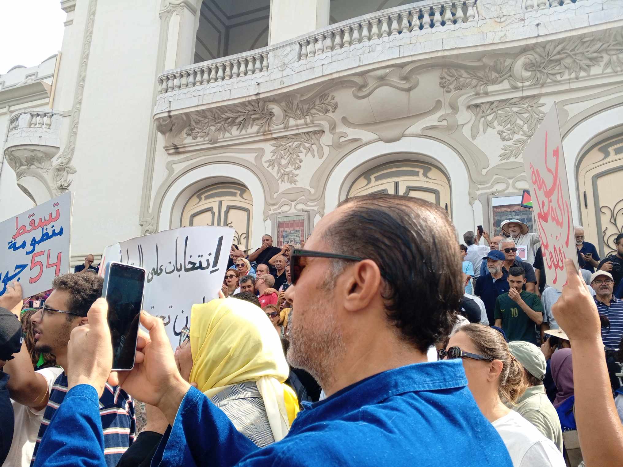Nafâa Laaribi, membre du comité de défense d’Abir Moussi et avocat, a qualifié le projet de loi d’extrêmement dangereux, affirmant qu’il va à l’encontre des bonnes pratiques électorales reconnues par la Commission de Venise et d’autres instances internationales. Il a exprimé sa surprise face à une telle initiative présentée par un petit groupe de députés en pleine campagne électorale. Il précise dans ce contexte : « c‘est la raison pour laquelle on est sortis aujourd’hui. On va voir ce qui va se passer, on va voir la réaction du pouvoir en place, comment ils vont réagir. Tout de même, il s’agit de milliers de Tunisiens qui sont sortis aujourd’hui. Leurs voix ne sont pas anodines, elles sont audibles, et cette manifestation doit vraiment être prise en considération ».