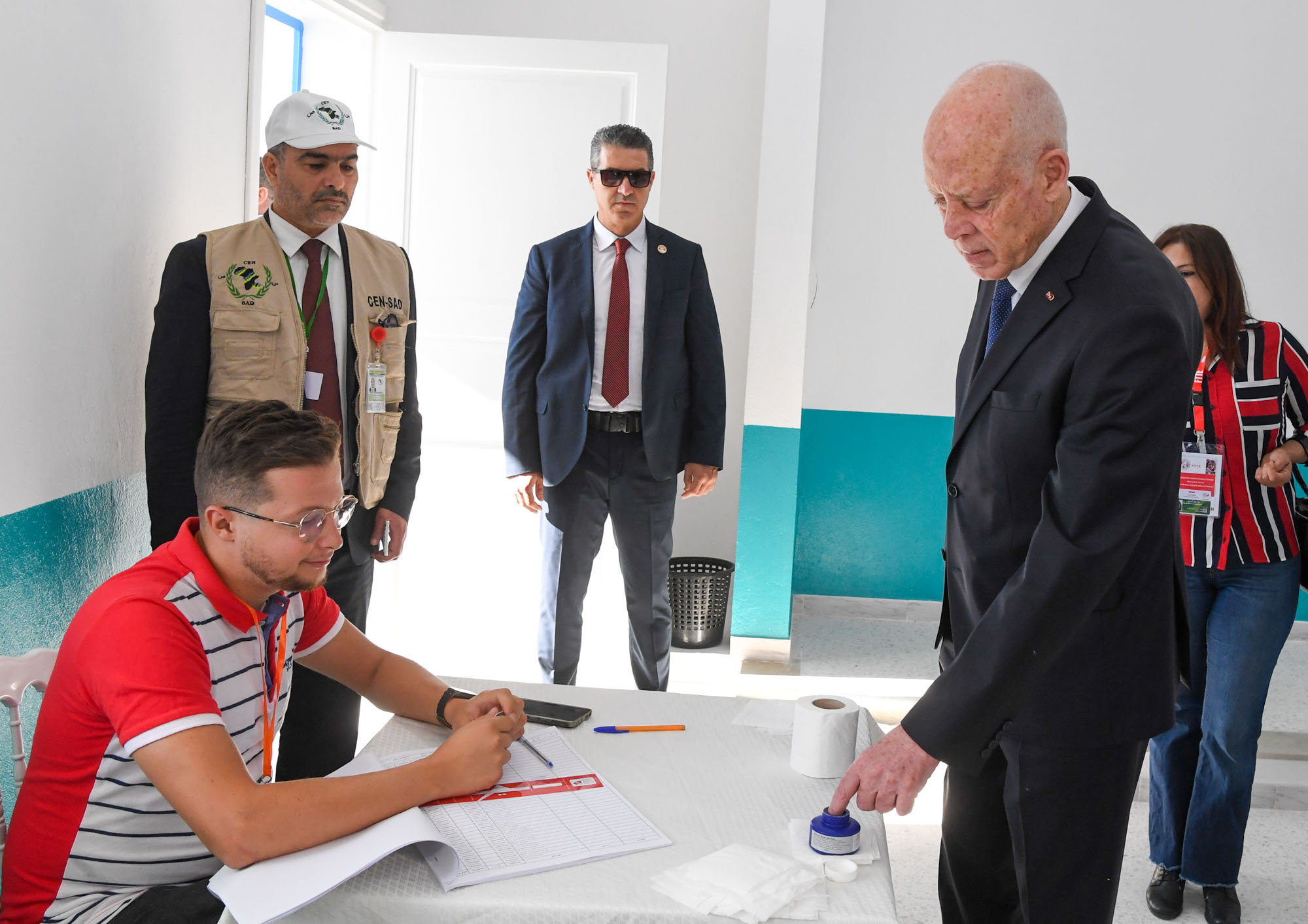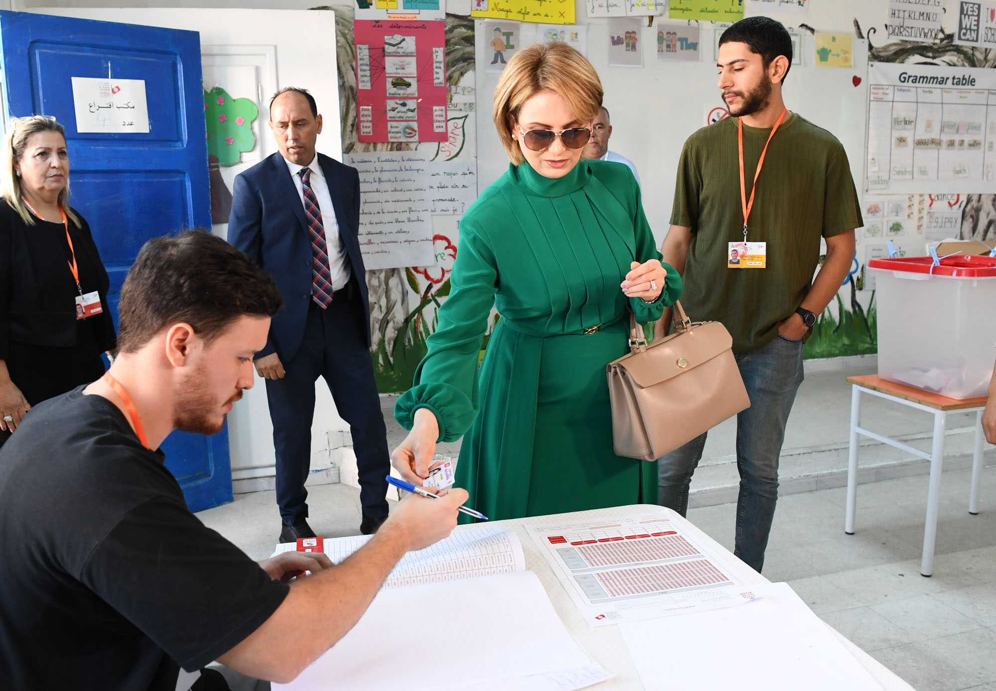 Le président de la République, Kaïs Saïed, et son épouse ont exercé leur droit de vote lors des élections présidentielles à l’école primaire à la Cité Ennasser 1.