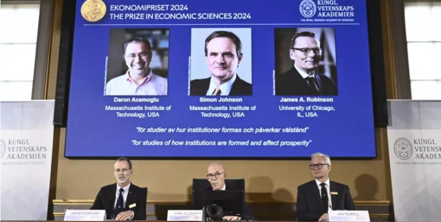 Trois économistes américains succèdent, pour le prix Nobel d’économie, à une autre Américaine, Claudia Goldin, primée, elle, en 2023. Ils sont récompensés « pour leurs travaux sur le rôle des institutions dans la prospérité économique », précise l’Académie royale de Suède.