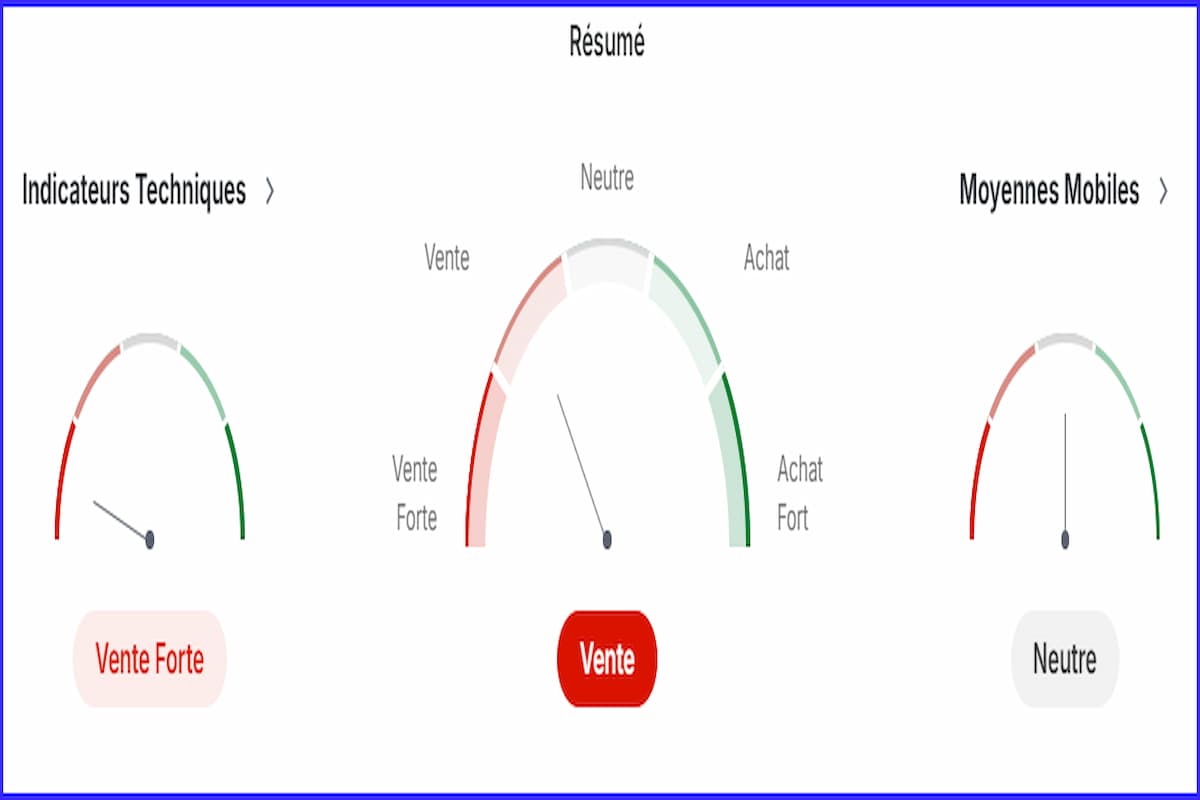 – MA50 : Les moyennes mobiles sur 50 jours signalent un achat, suggérant un potentiel point de rebond ou de stabilisation sur le moyen terme.