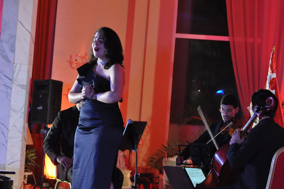 Le programme de la soirée a pris son départ avec le Quatuor à cordes tunisien (Lunar Quartet), qui a offert une mise en bouche avec la célèbre Petite musique de nuit, exécutée avec attention et soin. Oumayma Ben Ammar, jeune soprano, issue du Conservatoire de musique de Tunis, en résidence à l’Hasdrubal, attaque, sans attendre, l’affectueux (O miobabbinocaro) de Giacomo Puccini dont on célèbre cette année le centenaire de sa mort.