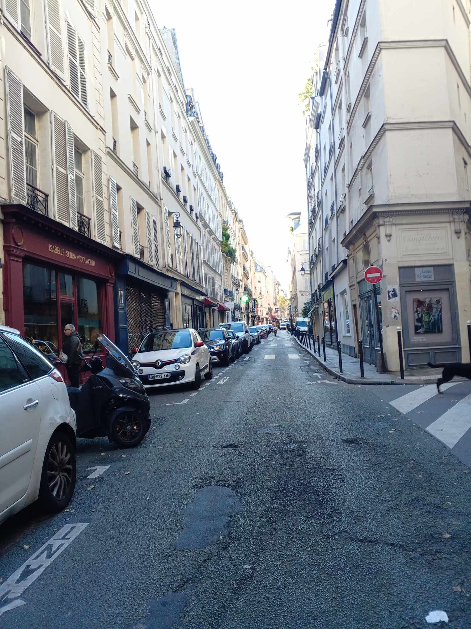 Après un petit déjeuner copieux composé de fromage (parce qu’on est en France, après tout), de pain et d’un croissant nature — sans oublier deux bonnes tasses de café américain pour bien démarrer la journée — direction Saint Germain des Près dans le 6ème arrondissement.  Ses habitants sont les « Germanopratins ». J’avais rendez-vous avec Marianne vers 10h45. Évidemment, j’étais un peu en avance ; il faut bien avouer que les métros parisiens sont d’une ponctualité à faire pâlir d’envie les horlogers suisses ! J’ai pris la station Mabillon et je suis sorti à la rue du Four à Saint-Germain-des-Prés.