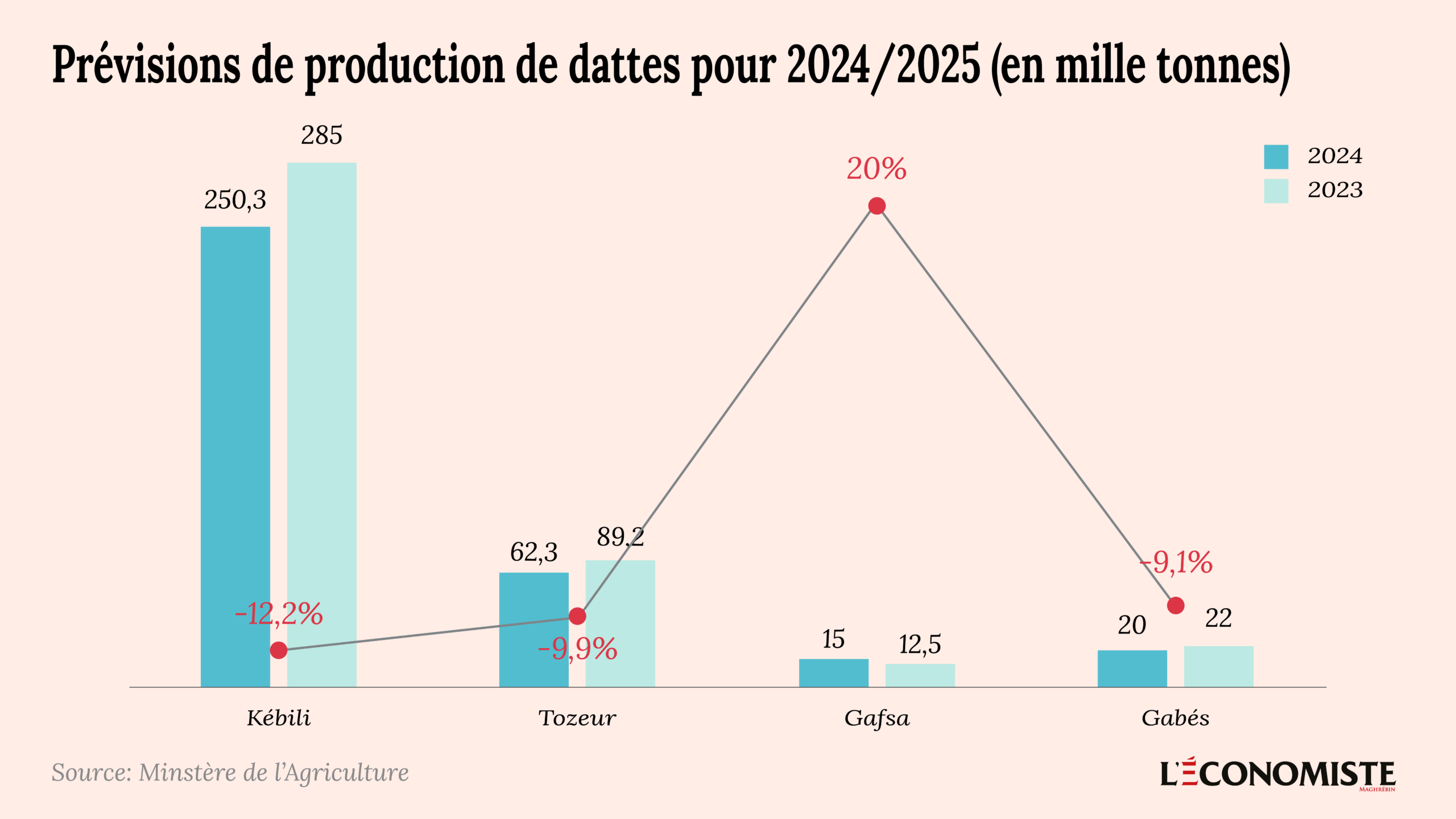 - Tozeur: 62,3 000 tonnes (-9,9 %);