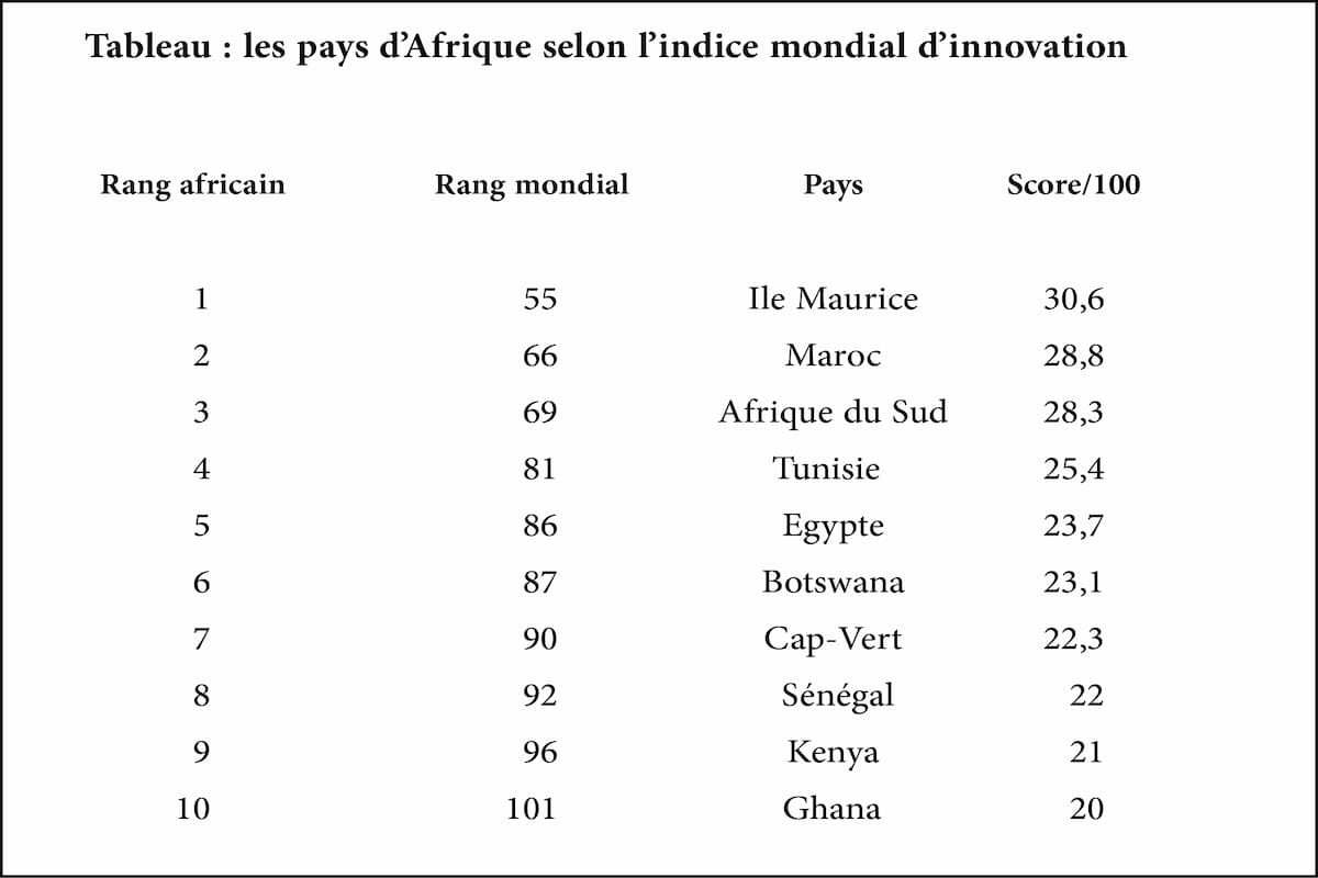 Tableau : les 10 pays d’Afrique les plus innovants selon l’indice mondial d’innovation